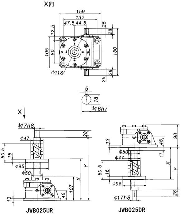 | 當前位置:減速機首頁 >> 產(chǎn)品大全 >> 升降機 >> JW螺旋升降機 >> JWB025絲杠升降機外形尺寸表 |