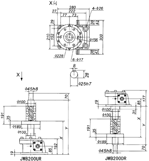 | 當(dāng)前位置:減速機首頁 >> 產(chǎn)品大全 >> 升降機 >> JW螺旋升降機 >> JWB200絲杠升降機外形尺寸表 |