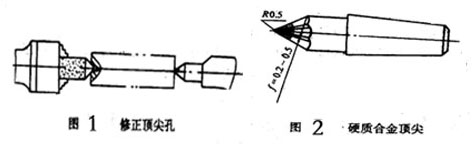 用硬質(zhì)合金頂尖修研頂尖孔圖2所示為修研頂尖孔的硬質(zhì)合金頂尖,其結(jié)構(gòu)特點是在60度圓錐此刃帶具有微量切削作用,對頂尖孔幾何形狀有修正和擠光作用。這種方法生產(chǎn)率高,但質(zhì)量稍差,多用地普通軸頂尖孔修研,或作為精密軸頂尖孔的精研。