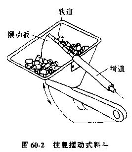 2) 擺動式料斗,圖60-2為一種典型的擺動式料斗結(jié)構(gòu)。擺動板由凸輪或曲柄驅(qū)動,零件隨軌道擺動到與滑道一直的威勢時,方位正確的將進(jìn)入滑道,不正確的回落到料斗。