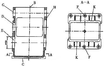 以刀庫中的鉆頭為校正工具,并使主軸以1000r/min的速度旋轉(zhuǎn),在兩側(cè)F面水平基準線起止處鉆頭微切工件表面進行試切,根據(jù)試切點與基準線的相對位置,確定工件左右中心線是否在同一水平上,校正號工件F面兩側(cè)水平后,工作臺旋轉(zhuǎn)90°位置,采用同樣的方法校正工件B、C兩面基準線。最后移動Z軸,校正工件H面中心基準線,看劃的線是否在中心上,如果不在,松或緊夾具上的調(diào)整螺栓5,微調(diào)工件位置,直到校正為止。各基準線均校正好后,用壓板1將工件壓緊。