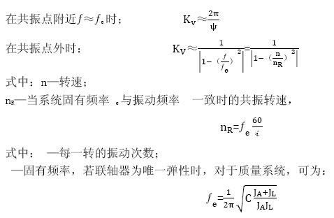 在工作轉(zhuǎn)速內(nèi)很快通過共振區(qū)時,僅出現(xiàn)較小的共振峰值.因此,在共振時的交變轉(zhuǎn)矩可與聯(lián)軸器的最大轉(zhuǎn)矩相比較。
