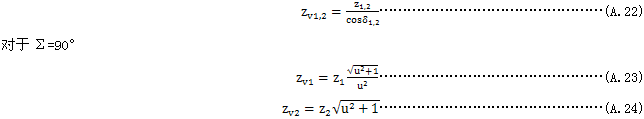 按式(A.37)與式(A.38)算出的當(dāng)量圓柱齒輪的重合度,對(duì)承載能力計(jì)算是重要的。但上述重合度可能偏離按錐齒輪實(shí)際尺寸算的重合度。