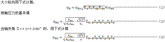 錐齒輪承載能力計算方法第 2 部分:齒面接觸疲勞(點(diǎn)蝕)強(qiáng)度計算計算輪齒接觸強(qiáng)度的公式(GB/T10062.2-2003)