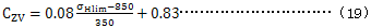 根據(jù)14.2中的規(guī)定,速度系數(shù)ZV是考慮節(jié)點(diǎn)線速度對齒面疲勞(點(diǎn)蝕)強(qiáng)度的影響。圖4中的速度系數(shù)曲線是節(jié)點(diǎn)線速度配對齒輪中較軟齒輪材料σHlim的函數(shù)。ZV­可用式(18)和式(19)計(jì)算,公式和圖4中的曲線相一致。