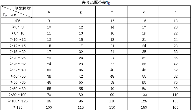 7.3評(píng)定齒輪傳動(dòng)側(cè)隙的指標(biāo)是 和TS。具體數(shù)值分別見表5、表6。
