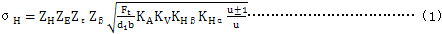 5.1.1漸開線圓柱齒輪齒面接觸應(yīng)力σH按式(1)計(jì)算: