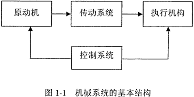 一般而言,機(jī)械是由原動機(jī)與若干機(jī)構(gòu)組合而成的系統(tǒng),稱為“機(jī)械系統(tǒng)”。按照各組成環(huán)節(jié)的功能劃分,機(jī)械系統(tǒng)的基本結(jié)構(gòu)如圖1-1所示。
