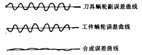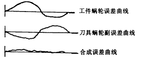 2. 周期誤差抵消,如果測出插齒機兩套蝸輪副的周期誤差(即蝸桿誤差)大,而兩套蝸輪的齒數zfc和zf又不相同,這時可選定z/zc=zf/zfc,使得兩套蝸桿的周期變得相同,再配合儀器調整其相位相反后固定。這樣,在以后的運動過程中蝸輪副的周期誤差值將被抵消絕大部分(圖4)。