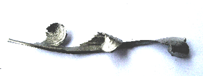 生成原理:在生成“6”字形屑的條件下,若圓弧槽略深,外刃與圓弧刃交點處雖出現(xiàn)時連時分的排屑狀態(tài),但以分屑為主。外刃與圓弧刃切屑連成一體的時間很短,出現(xiàn)一段段的”花”狀的連體屑。