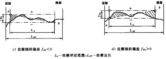 ——評(píng)定范圍內(nèi)齒廓傾斜偏差,mm;