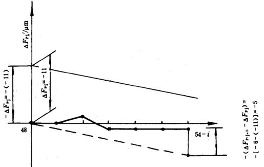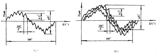 按16.1.2所述原理,測出截面整體誤差曲線或全齒寬整體誤差曲線,在該曲線上按誤差定義取出