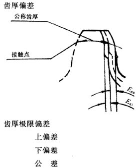 接觸點(diǎn)所在圓柱面上,法向齒厚實(shí)際值與公稱值之差。 |