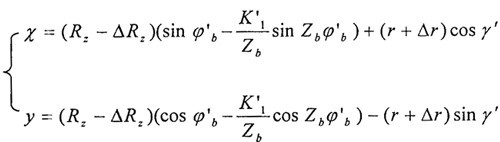 擺線輪的齒廓修形量是影響RV減速器傳動性能的重要參數(shù),首先需建立一個概括上述的前兩種修形方法的通用擺線輪齒廓方程式,只要將標(biāo)準(zhǔn)齒廓方程式(3-l)中的Rz以(Rz-△Rz)代替,K1以K1′=e*zb/(Rz-△Rz)代替,r以(r+△r)代替,即可得到通用擺線輪齒廓方程式為: