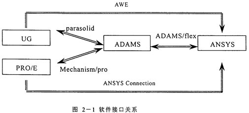 以上四個(gè)軟件均是當(dāng)今比較流行且功能強(qiáng)大的大型CAD/CAE軟件,然而考慮到ADAMS的內(nèi)核就是Parasolid,從UG中導(dǎo)入ADAMS的模型包含了在UG里定義的密度、質(zhì)量等幾何屬性,不需作任何變更就可使用;而PRO/E與ADAMS間通過(guò)Mechanism/pro模塊進(jìn)行連接時(shí)存在較多的問(wèn)題,經(jīng)過(guò)長(zhǎng)時(shí)間的摸索才連通,且發(fā)現(xiàn)在PRO/E里南非先將各個(gè)零件定義為剛體,作為子裝配只能定義為一個(gè)剛體,可是像RV減速器這樣的大模型在裝配過(guò)程中不可避免地含有子裝配并且子裝配中的零件間有相對(duì)運(yùn)動(dòng),將其定義為一個(gè)剛體是錯(cuò)誤的,為此,本課題中采用了UG、ADAMS與ANSYS形成的分析平臺(tái)。