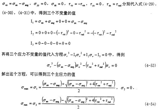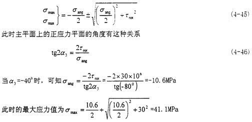 這時取σax=10.6MPa,τrad=10MPa,代入式(4-56)中,可以得出最大主應(yīng)力值為
