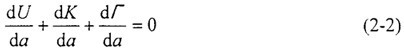 對(duì)于無(wú)限大板中的裂紋而言,應(yīng)變能U和表面能廠的表達(dá)式同靜態(tài)清況相比沒(méi)有形式上的改變。將三種能量的表達(dá)式代入能量平衡方程(2-2),可得: