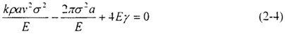 將單位面積的表面能廠用表示為臨界裂紋長(zhǎng)度ac的形式,經(jīng)過(guò)Berry等人的修正,得到裂紋速度的表達(dá)式: