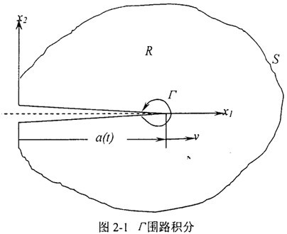 這里Γ的形狀是任意的,但必須附關(guān)于裂尖的運(yùn)動(dòng)坐標(biāo)系。這個(gè)表達(dá)式對(duì)線性與非線性的材料均適用。