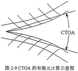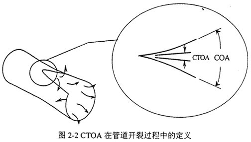 裂紋尖端張開(kāi)角CTOA(Crack Tip Opening Angle)最早被用來(lái)分析核電站管路的穩(wěn)態(tài)裂紋擴(kuò)展,后來(lái)用于輸氣管線和航空工業(yè)。如圖2-2,與裂紋張開(kāi)角COA不同,CTOA對(duì)應(yīng)于一定的斷裂擴(kuò)展?fàn)顟B(tài),不隨測(cè)量點(diǎn)的位置而改變。CTOA在數(shù)學(xué)上可以按下式定義: