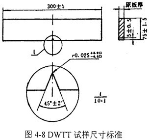 圖4-8和圖4-9分別表示DWTT的試樣標準和斷口形貌。