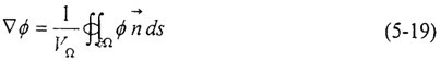 的計(jì)算主要是求出控制面上相關(guān)物理量的梯度值。首先由(5-19)式求出各單元內(nèi)物理量ф的梯度值后,界面(i,j)上物理量的梯度值可簡單地由相鄰單元內(nèi)物理量ф的梯度值的算術(shù)平均得出: