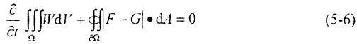 Ω是控制體邊界面,W是求解變量,F(xiàn)是無粘通量,G是粘性通量。