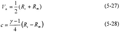 其中無反射邊界條件是根據(jù)特征線的方法來求出邊界上的參數(shù)值。根據(jù)一維完全氣體無粘非定常運(yùn)動的方程組,在亞聲速的條件下由邊界上的入射波和出射波關(guān)系可以得到兩個Riemann不變量: