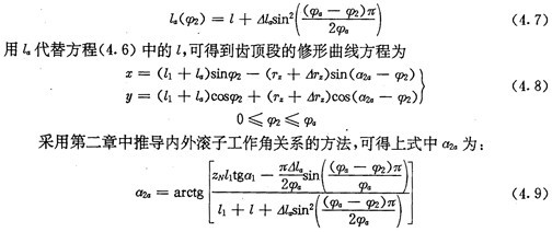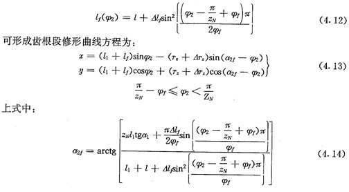 若令(4.30)式和(4.31)式中的E=0,得到的就是無(wú)偏距時(shí)的內(nèi)齒圈齒廓理論方程式(2.21)及公法線長(zhǎng)度(4.18)式。