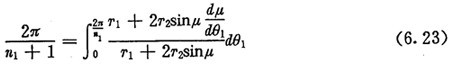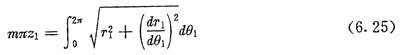 由于每個周期的弧長都是相等的,太陽輪節(jié)曲線的總長等于n1個周期的弧長之和,用n1乘以(6.24)兩邊,可得等分條件的另一種表達形式: