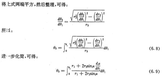 假設圖6.4中O1、M1、M2三點始終都能保持在同一直線上,則對于太陽輪轉角 ,圖6.4中的a2可根據(jù)圖6.3中的行星輪轉角θ2求得,由圖中幾何關系及(6.4)式應有