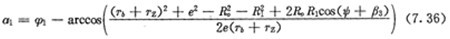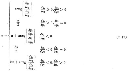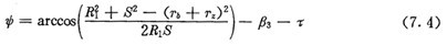 2點向徑與法線的夾角,可由圖7.3求得,為: