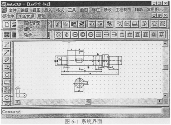 提取常用結(jié)構(gòu)單元(軸套類、叉架類、盤蓋類、箱體類、螺紋聯(lián)結(jié)類等),并全部建立參數(shù)化繪圖程序。用通用CAD系統(tǒng)直接繪制的圖形是以實體(如點、線、圓弧等)為單位管理的,圖形修改、查詢很不方便。本系統(tǒng)通過定義擴展實體數(shù)據(jù)(XData)實現(xiàn)了全部的圖形結(jié)構(gòu)化管理,將具有工程意義的結(jié)構(gòu)圖形定義為圖元,大大提高了設計效率。
