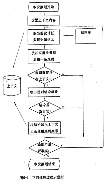 正向推理系統(tǒng)中,用戶先輸入與當(dāng)前問(wèn)題有關(guān)的信息,構(gòu)成當(dāng)前數(shù)據(jù)庫(kù)(上下文)。正向推理的示意圖如圖5-l。
