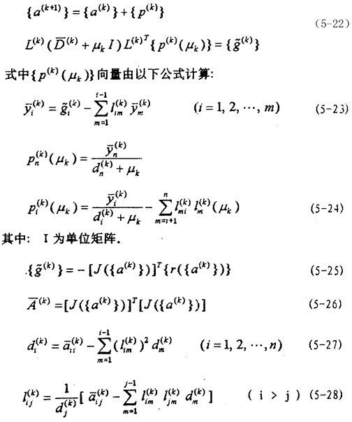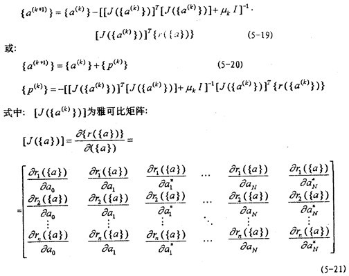 [J3]的計(jì)算實(shí)際上就是偏導(dǎo)數(shù) {fj({ a(k)})}/ { a(k)}的計(jì)算。計(jì)算方法與計(jì)算 {q({ a(k)})}的方法類(lèi)似,故不再贅述。對(duì)于[J2],[J3]、分別有式(5-34)、(5-35)。