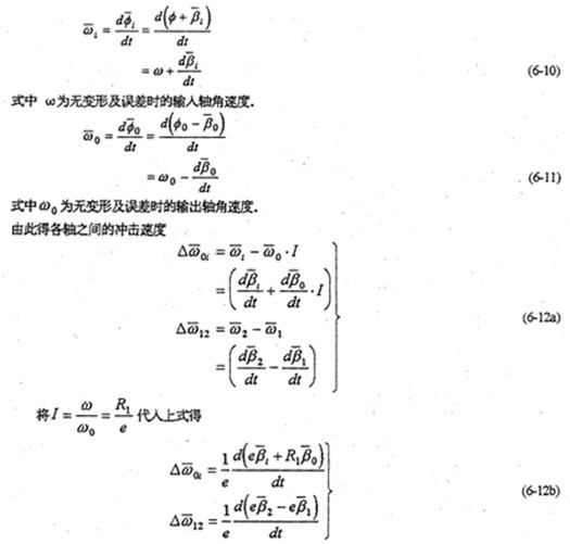 由于減速器機(jī)構(gòu)的變形及各構(gòu)件的誤差,使各傳動(dòng)軸的角速度及角加速度不再滿(mǎn)足條件式(6-8)及式(6-9),亦在運(yùn)轉(zhuǎn)過(guò)程中各軸之間存在角速度及角加速度的沖擊現(xiàn)象。該沖擊將直接導(dǎo)致系統(tǒng)振動(dòng),使輸出速度產(chǎn)生波動(dòng)、降低其輸出的穩(wěn)定性,并產(chǎn)生沖擊載荷。