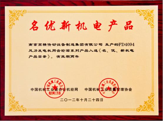 近期,由中國機械工業(yè)質量管理協會和中國機械工業(yè)聯合會機經網共同主辦的“名優(yōu)新機電產品”評選活動中,南京高精傳動設備制造集團有限公司(簡稱:南高齒)子公司南京高速齒輪制造有限公司研制的的FD4094型風電齒輪箱系列產品成功入選《名、優(yōu)、新機電產品目錄》。