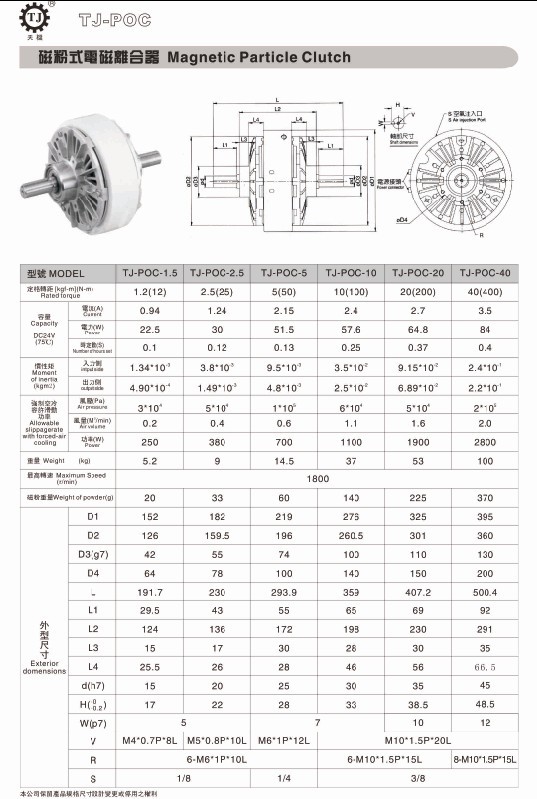 天機(jī)TJ-POC電磁式磁粉剎車器尺寸規(guī)格如下: