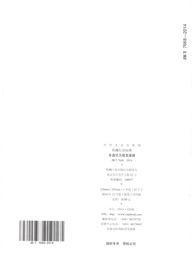 多盤式無(wú)級(jí)變速器(JB/T7668-2014)