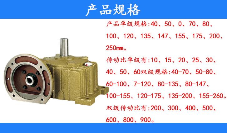 2、能以單級傳動獲得較大的傳動比,結(jié)構(gòu)緊湊,大部分型號減速機有較好的自