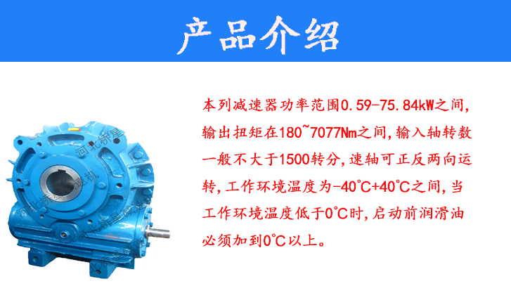 SCW系列圓弧圓柱蝸桿減速機蝸桿軸轉(zhuǎn)速不超過1500r/min;工作環(huán)境溫度為-40-40℃,當工作環(huán)境溫度低于0℃時,啟動前潤滑油必須加熱到0℃該減速機可正、反向運轉(zhuǎn)。