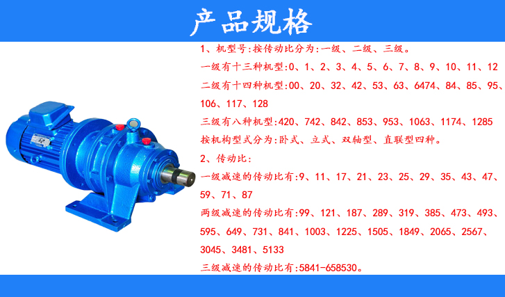 行星擺線針輪減速機全部傳動裝置可分三部分:輸入部分、減速部分、輸出部分、按結(jié)構(gòu)形式分為:臥式立式、雙軸型、直聯(lián)型四種。我廠除生產(chǎn)標(biāo)準(zhǔn)減速機外,還可滿足用戶需要承接非標(biāo)設(shè)計制造potoo oe oae直聯(lián)型減速機與Y系列專用電動機及Y系列派生專用電動機組裝在一起,如YA增安型電動機、YB防爆電動機、YCT調(diào)速電動機、YE制動電動機等。