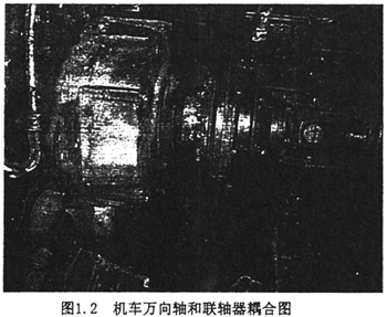 內(nèi)燃機(jī)車柴油機(jī)所使用的彈性聯(lián)軸器的工作特點(diǎn)與一般機(jī)械上的彈性聯(lián)軸器不同,柴油機(jī)起動(dòng)時(shí),動(dòng)力由電機(jī)端通過輔助萬向軸經(jīng)彈性聯(lián)軸器傳到柴油機(jī)。聯(lián)軸器的工作耦合圖見圖1.2。一旦起動(dòng)成功,則動(dòng)力改由柴油機(jī)端傳入,經(jīng)彈性聯(lián)軸器與萬向軸輸出帶動(dòng)電機(jī)。因此,萬向軸與彈性聯(lián)軸器工作狀態(tài)的耦合情況,特別是彈性聯(lián)軸器在短時(shí)間內(nèi)承受反轉(zhuǎn)扭矩所產(chǎn)生的扭轉(zhuǎn)振動(dòng)對(duì)彈性聯(lián)軸器的失效可能有重要的影響。機(jī)車柴油機(jī)輸出軸與萬向軸之間的彈性聯(lián)軸器的失效問題已成為急待解決的技術(shù)問題之一。因此,在對(duì)彈性聯(lián)軸器進(jìn)行一般性的研究基礎(chǔ)上,還需要研究聯(lián)軸器在不對(duì)中的工作情況下,扭矩輸入輸出方向反轉(zhuǎn)特性對(duì)其動(dòng)力及強(qiáng)度特性的影響。