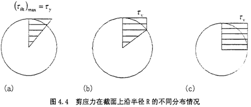此時剪應(yīng)力在截面上沿半徑R的分布情況見如圖4.4(b)所示。
