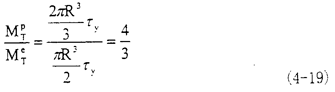 在材料力學(xué)中已知圓軸扭轉(zhuǎn)時的變形規(guī)律。隨著扭矩MT的增加,剪應(yīng)力也不斷增大。由于圓軸最外層剪應(yīng)力最大,因而最外層首先進(jìn)入塑性狀態(tài),此時的扭矩就是圓軸的彈性極限扭矩