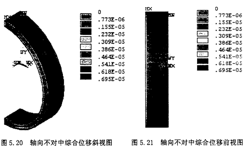 軸向不對中時,根據(jù)實(shí)際情況取中量為△ax=5mm,則可以認(rèn)為外端面沿z軸方向的位移為5mm,如圖5.18所示。產(chǎn)生的附加的軸向載荷按照。選擇選擇Main Menu>>Solution>Define