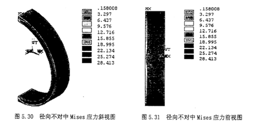 2.顯示節(jié)點(diǎn)的Von Mises應(yīng)力云圖;選擇Main Menu>General Postproc>Plot Result>NodalSolu,在彈出的對話框內(nèi)選擇“Stress”,第二欄內(nèi)選擇“Von Mises Stress”,則其顯示的云圖如圖5.22,5.23所示