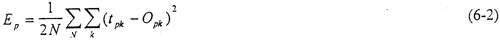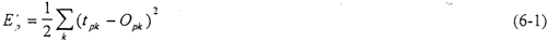 前饋網(wǎng)絡(luò)的訓練學習是一種監(jiān)督學習,而監(jiān)督學習的范例要求每一個輸入模式矢量與表示所期望的輸出模式矢量必須配對。一般說來,網(wǎng)絡(luò)輸出值{OPK}與期望的輸出值{tPK}是不相等的。對每一個輸入模式的模式樣本,其平方誤差