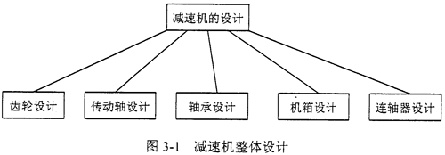 減速機,作為一個完整的傳動系統(tǒng),其設計包括:齒輪設計,傳動軸設計,軸承設計,機箱設計以及連軸器設計,如圖3-1所示。