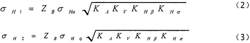 小輪和大輪的計算接觸應力σH1、σH2分別按下述兩式確定: